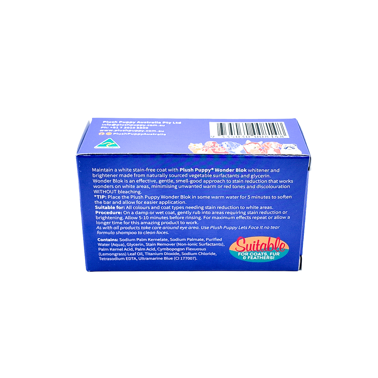 Suitable: Plush Puppy Wonder Blok is ideal for all dog coat types that require stain reduction to white areas. Assists in removing unwanted warm/red tones.